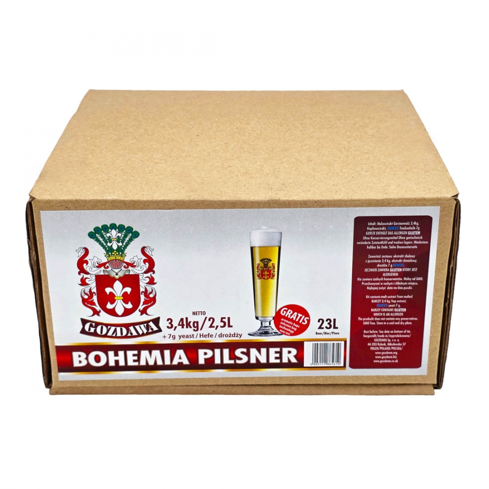 Sett for enkel hjemmebrygging av Bohemia Pilsner. Inneholder ferdig humlet, hermetisert maltsirup av maltet bygg og tørrgjær. Maltekstrakten inneholder nok fermenterbart sukker til hele brygget. Gir ca. 23 liter ferdig øl. Kort forberedelse og bryggetid.