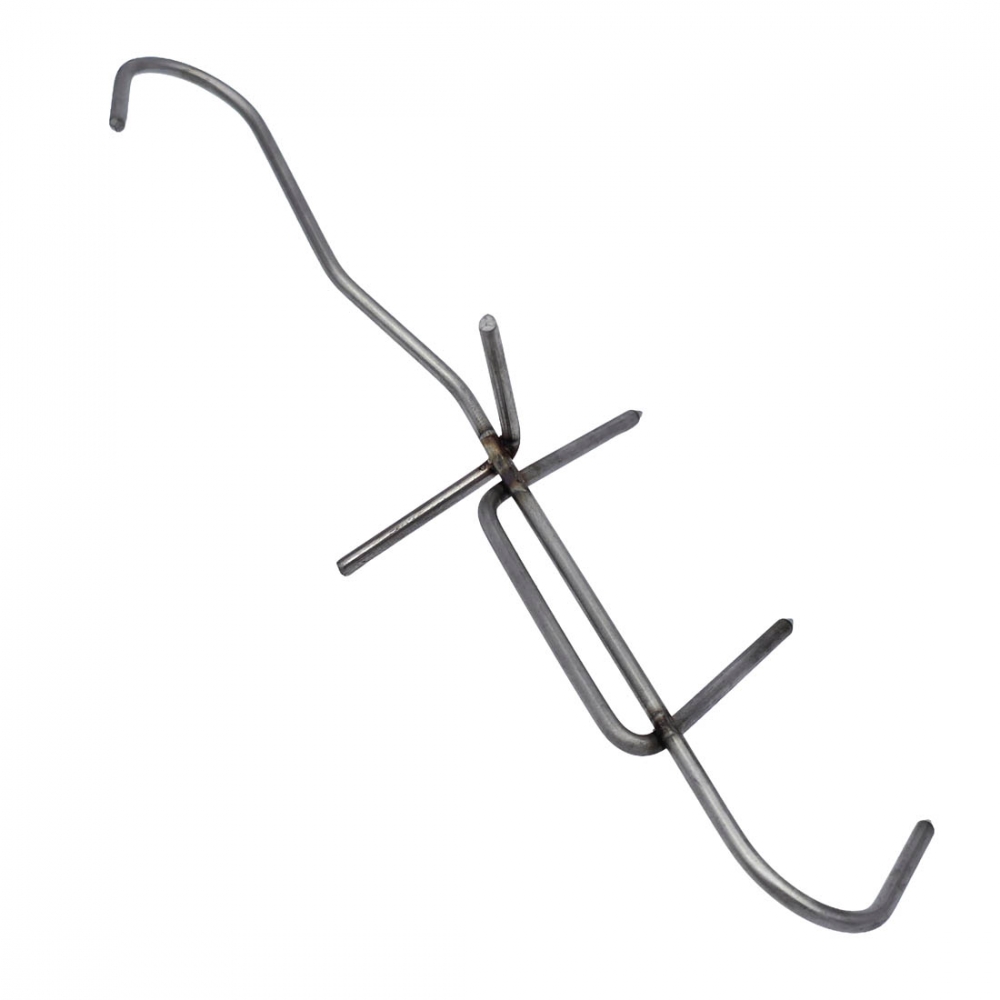 Store røykekroker for effektiv og komfortabel røyking av fisk. Tre pigger og en tverrstang sørger for sikkert feste og jevn røyktilgang, også på innsiden av fisken. Krokene er laget av slitesterkt, rustfritt stål og passer for alle typer røykovner.