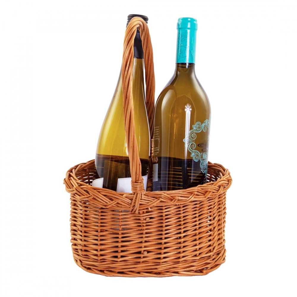 Flettet vinkurv med håndtak – praktisk og sjarmerende. Håndlaget av slitesterk, naturlig pil med plass til to flasker. Perfekt til piknik, middagsselskap, som gavekurv eller dekorativ oppbevaring på kjøkken eller i stue. Tidløs og funksjonell design.