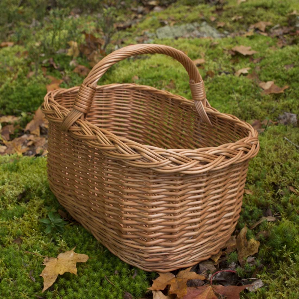Håndlaget kurv flettet av naturlig pil – "Hollender" (stor). Slitesterk og allsidig, perfekt som handlekurv, til plukking av sopp, innhøsting, oppbevaring, strikketøy, pynt eller gave. Skap et rustikt preg og en koselig atmosfære i hjemmet ditt!