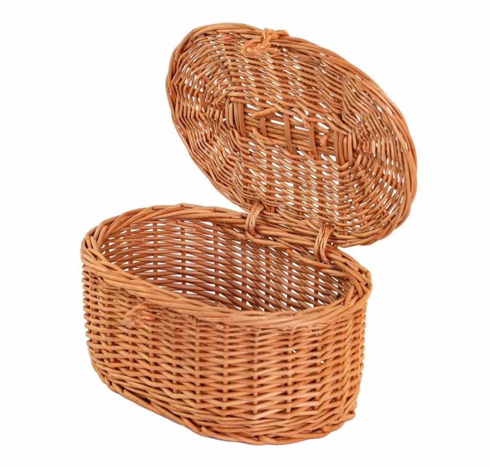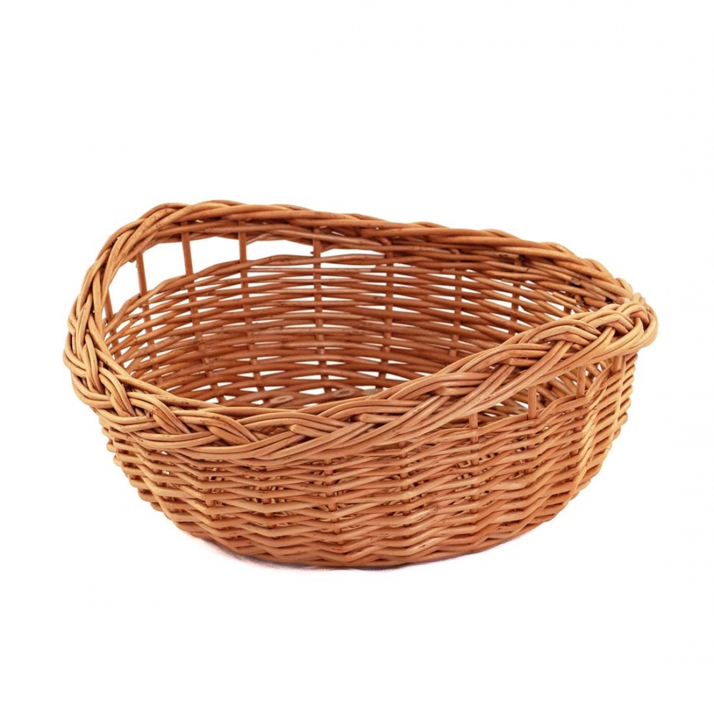 Flettet brødkurv med bærehull - et dekorativt og praktisk innslag på bordet. Håndlaget av naturlig pil. Perfekt til servering av brød, frukt eller søtsaker. Kan også brukes til småoppbevaring av smykker, leker, nøkler eller til bærplukking.