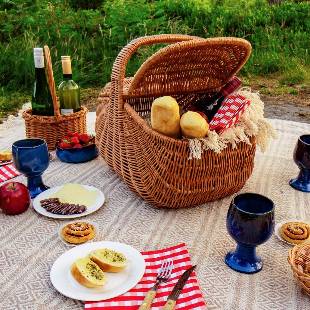 Håndlaget piknikkurv flettet av naturlig pil – "Hilde". Ekstra solid og romslig med dobbelt lokk og håndtak. Perfekt til piknik, utflukter, soppplukking, handleturer og oppbevaring. Skap en rustikk og hyggelig atmosfære både på tur og hjemme.