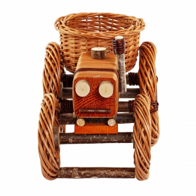 Sjarmerende blomsterpotte i flettet pil – modell "Traktor". En leken og rustikk dekorasjon for både inne- og utebruk. Håndlaget av naturlig, solid pil som gir god holdbarhet. Passer til små planter, urter eller tørkede blomster, men er også fin som dekorasjon i seg selv. Perfekt for deg som liker landlig stil!