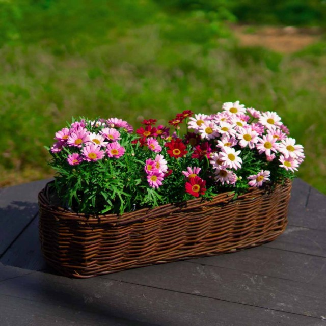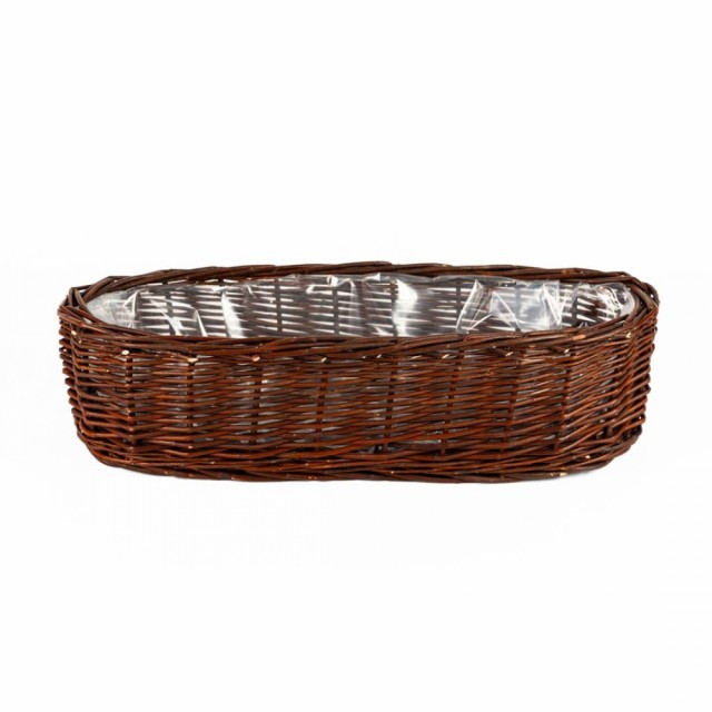 Lang kurvpotte håndlaget av naturlig, ubarket og holdbar pil, med plastfolie på innsiden. Perfekt til sommerblomster, urter eller små planter på balkong, terrasse eller i hagen. Kurven egner seg også godt til kreative blomsterarrangementer og dekorasjoner med friske eller tørkede blomster. Et rustikt uttrykk som skaper en lun stemning.