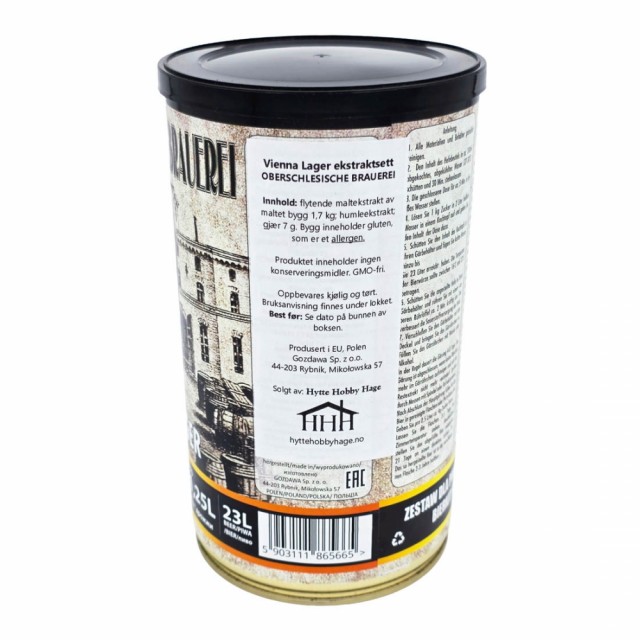 - ferdig humlet, hermetisert maltsirup av maltet bygg (1,7 kg)