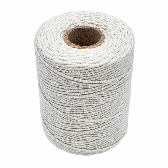 Slaktertråd av naturlig bomull beregnet for manuell oppbinding av kjøtt til røyking, koking, steking og modning. Tråden tåler varmebehandling opptil ca. 300°C uten å påvirke kjøttets smak eller aroma. Den er slitesterk og sterk nok til oppheng av kjøtt på kroker. Egner seg godt for hjemmeproduksjon av kjøtt og pølser. Lengden på ca. 180 m gjør det mulig å håndtere større mengder effektivt uten avbrudd.