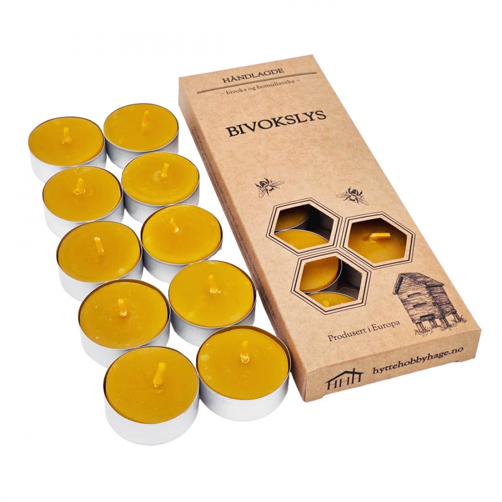 Skap en lun atmosfære med telys håndlaget av ren bivoks. Passer perfekt i lykter, telysholdere og telysvarmere. Det avgir en mild, varm duft av honning og brenner rolig uten å sote. Leveres ferdig pakket i sett à 10 i en økologisk, gavevennlig eske med vindu. Aluminiumskoppen sørger for jevn forbrenning av voksen og gjør det enklere å rydde opp etter at lyset er brent ned.