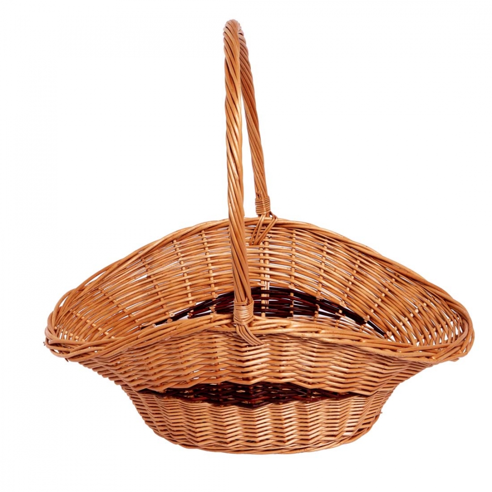 Flettet gavekurv med håndtak – perfekt for å lage vakre gaveoppsett. Ideell til å presentere delikatesser, vin, frukt eller annen mat på en elegant måte. Kan også brukes til servering, blomsterarrangementer eller dekorasjon. Håndlaget av slitesterk, naturlig pil for et sjarmerende og rustikt preg. En stilfull løsning for både spesielle anledninger og hverdagsbruk – perfekt til bryllup, høytider og vertinnegaver.