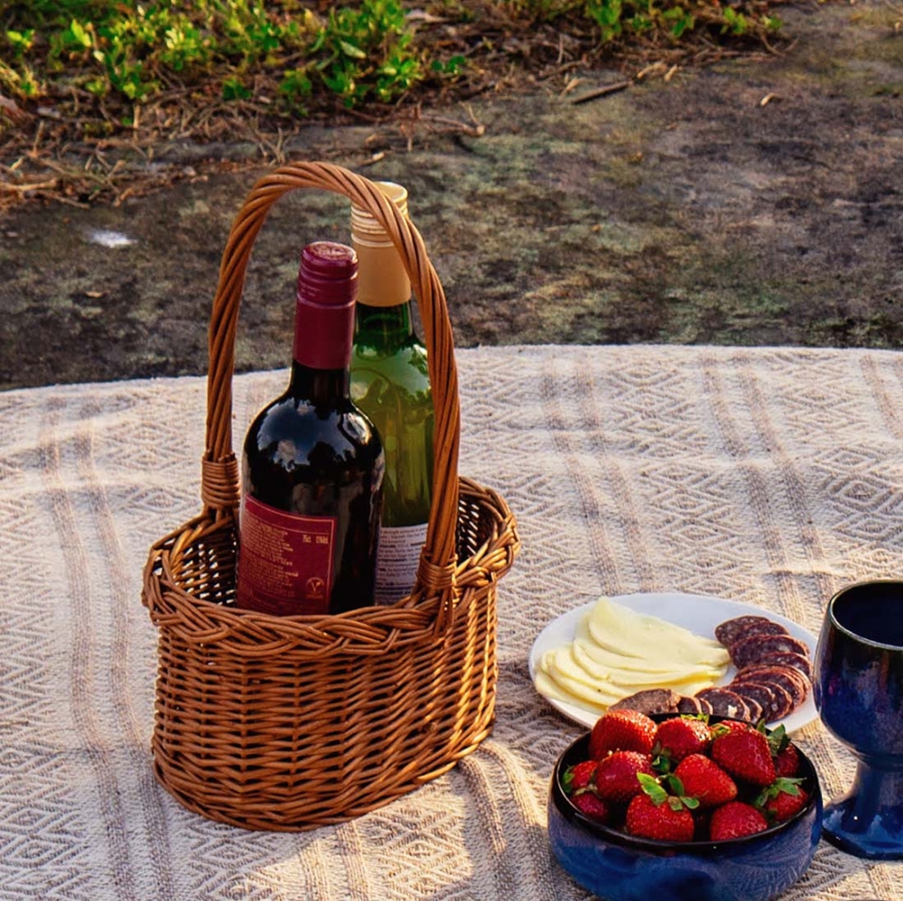 Flettet vinkurv med håndtak – plass til to flasker (med dimensjon på ⌀8 x 35 cm). Håndlaget av slitesterk naturpil for lang levetid. Perfekt til piknik, middagsselskap eller som en stilfull gave. Like fin som dekorativ oppbevaring på kjøkkenet eller i stua. Egnet for innhøsting av små frukter og grønnsaker takket være den smarte rominndelingen. En tidløs og rustikk klassiker som kombinerer stil og funksjon – året rundt. Praktisk og sjarmerende for enhver vinelsker.
