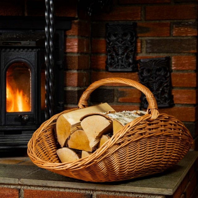 Flettet vedkurv med håndtak – modell "Nils". Håndlaget av slitesterk, naturlig pil som sikrer lang levetid. Dekorativ båtform og robust konstruksjon. Kurven passer selv til lange vedkubber på 60 cm. Bruk den til oppbevaring og transport av fyringsved ved peisen eller ovnen. Et funksjonelt og koselig tilskudd til ethvert hjem med ildsted. Kan også brukes til oppbevaring i stuen (f.eks. pledd, magasiner) eller til innhøsting i kjøkkenhagen.