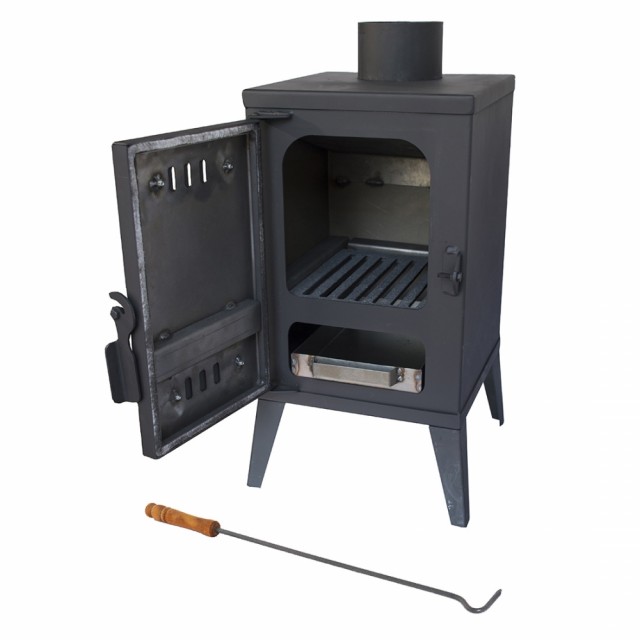 Mini vedovn i stål – kompakt og effektiv varmeløsning for friluftsliv og mer til! Den er perfekt for oppvarming av båt, campingvogn, telt, hagestue, gapahuk eller verande. Laget av slitesterkt, kaldvalset stål malt i svart. Ovnen er helt brukervennlig – enkel å installere, vedlikeholde, bruke og lett å flytte. Modellen vi har på lager nå, er utstyrt med 3 ildfaste steiner (ikke synlige på bildene), som lagrer varme og beskytter platene mot direkte kontakt med ilden, noe som øker både effektiviteten og levetiden til ovnen. Denne vedovnen gir rask og behagelig varme, slik at du kan nyte komfortable omgivelser året rundt!