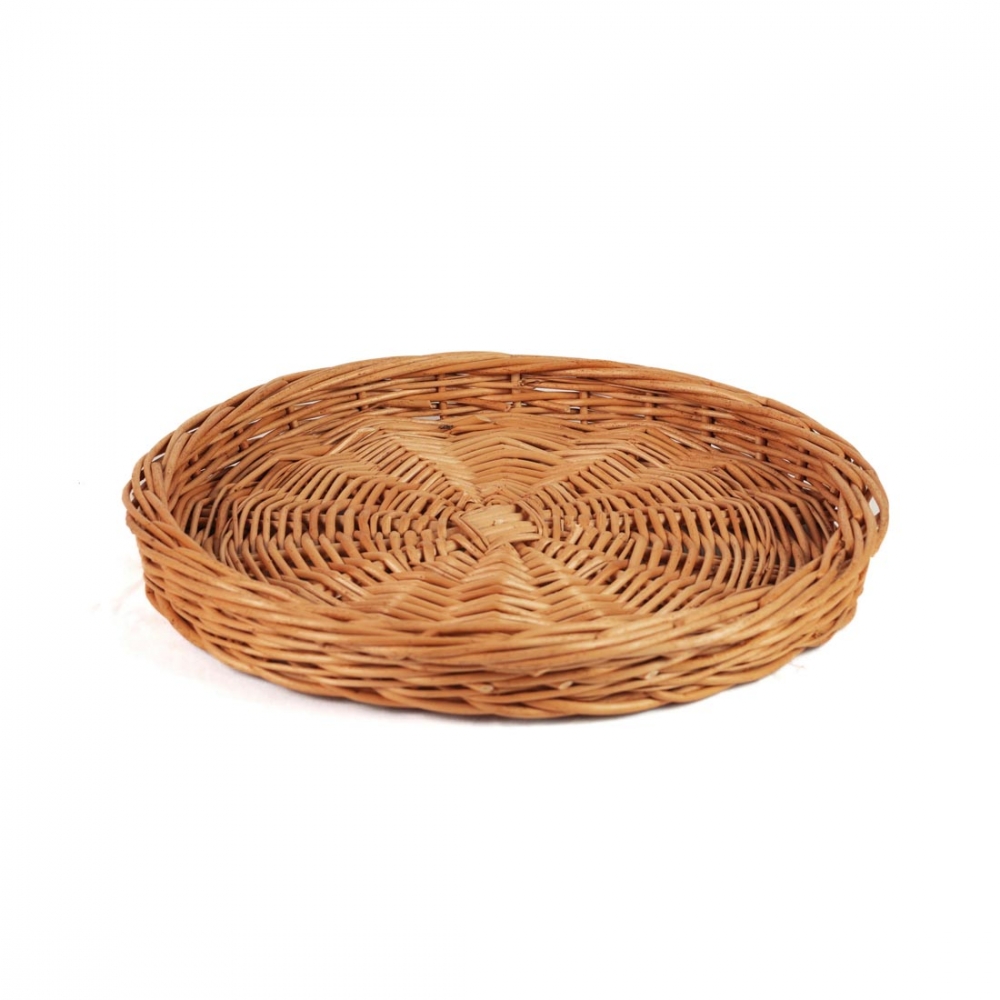 Liten kurvfat i flettet pil – perfekt til servering av pizza, kake, ost, brød eller frukt. Flott til frokostbordet, fest, selskap eller som pyntefat på kaffebordet. Tidløs og funksjonell design.