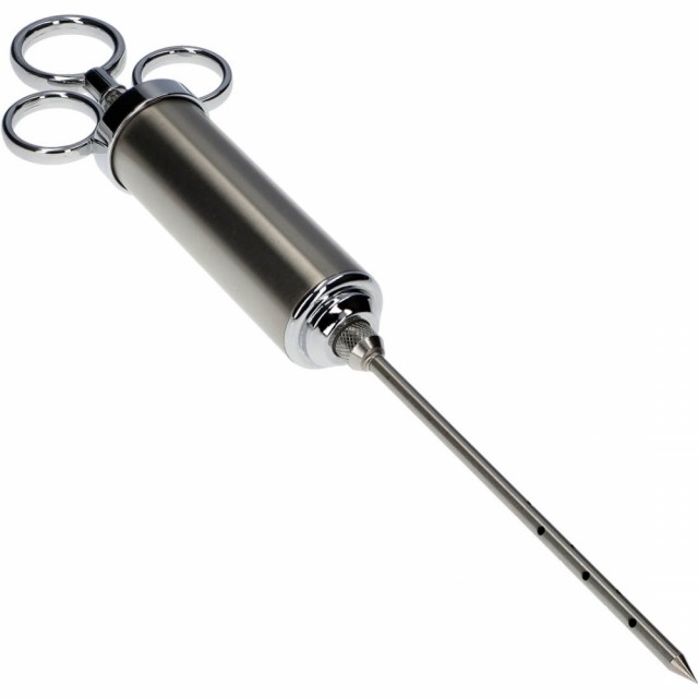 Solid marinadesprøyte i rustfritt stål med kapasitet på 60 ml, beregnet for injisering av marinade og saltlake i kjøtt og fisk. Leveres med to forskjellige nåler.