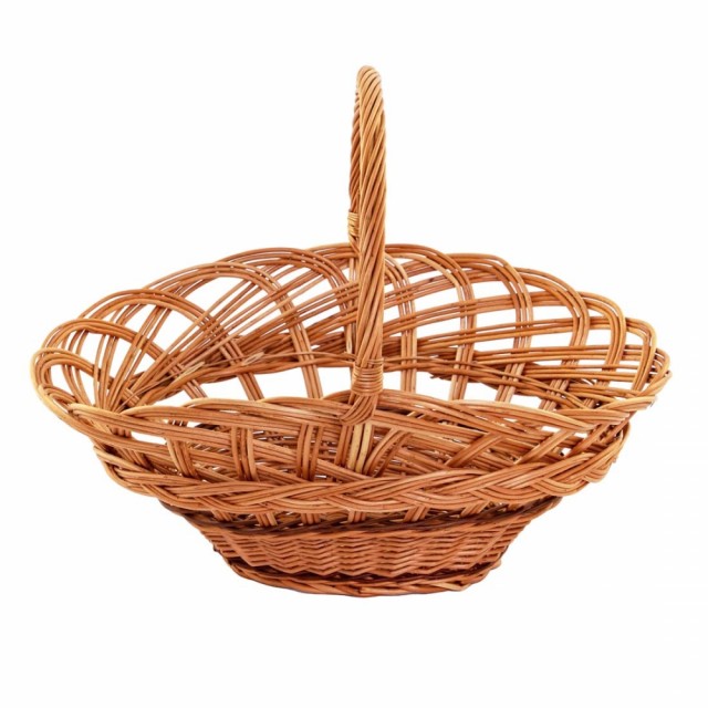 Flettet gavekurv med håndtak og dekorativt flettemønster – perfekt for å lage vakre gaveoppsett. Ideell til å presentere delikatesser, vin, frukt eller annen mat på en elegant måte. Kan også brukes til servering, blomsterarrangementer eller dekorasjon. Håndlaget av slitesterk, naturlig pil for et sjarmerende og rustikt preg. En stilfull løsning for både spesielle anledninger og hverdagsbruk – perfekt til bryllup, høytider og vertinnegaver.
