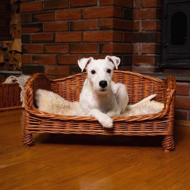 Dyrekurv flettet av pil med ben – ekstra robust og komfortabel. Med dekorative elementer som minner om en kongeseng. Perfekt for kjæledyret ditt å sove, slappe av eller leke i. Håndlaget av naturlig, holdbar pil med et solid underlag av sponplate – materialer som er trygge for dyr og enkle å rengjøre. Passer for både små og mellomstore hunder samt store katter. Det tidløse designet gir et koselig, landlig preg og passer i ethvert hjem. Tilgjengelig i to størrelser.