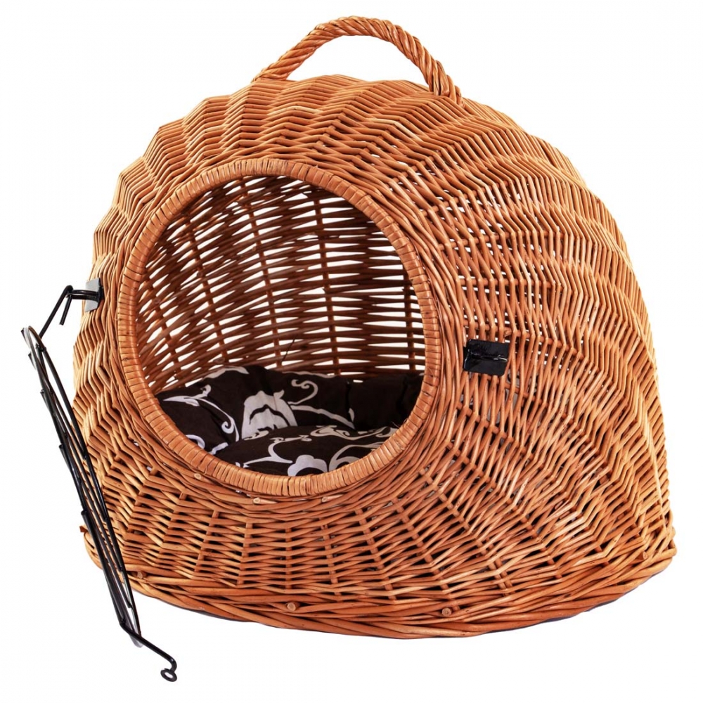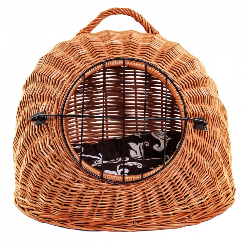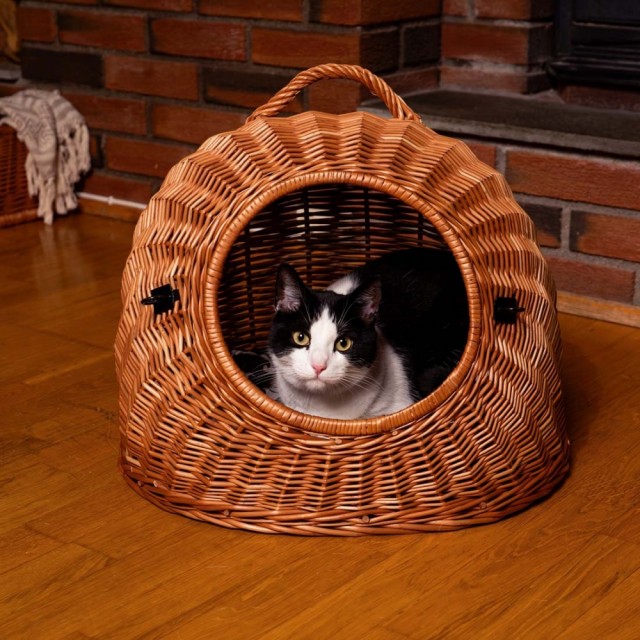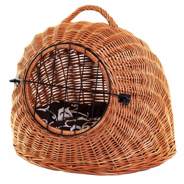 Sjarmerende kurvhule flettet av pil – ideell som både soveplass og transportbur for katter og små hunder. Håndlaget av naturlige, holdbare materialer som sikrer lang levetid og er enkle å rengjøre. Utstyrt med metallgitterdør og solid håndtak for enkel bæring. Den gir kjæledyret en trygg og koselig hvileplass, både hjemme og på reise. Det rustikke designet gir et koselig og tidløst preg og passer inn i ethvert hjem.