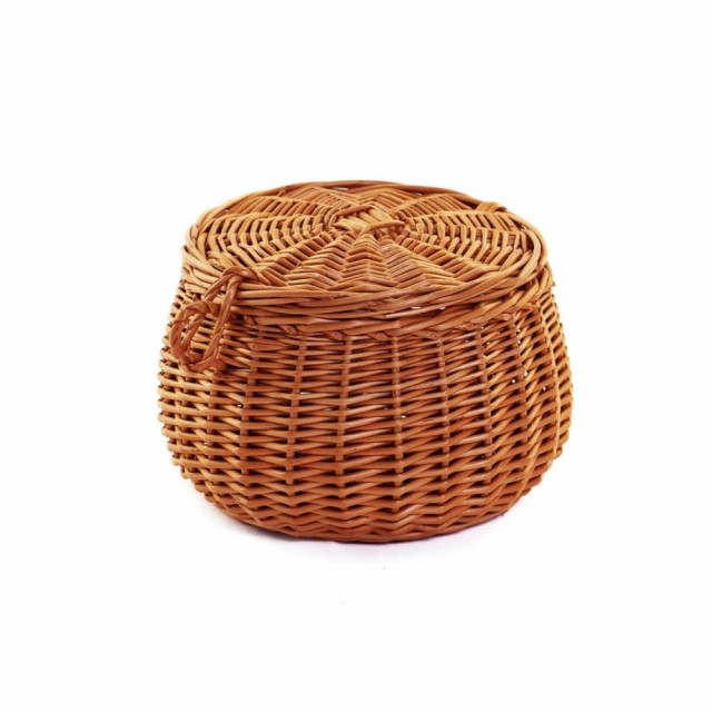 Liten flettet oppbevaringskurv med lokk. Håndlaget av slitesterk, naturlig pil. En praktisk og stilig løsning for oppbevaring av småsaker som smykker, nøkler eller kosmetikk. Perfekt til nattbordet, hyllen, på badet eller barnerommet. Også ideell som bordpynt med blomster eller godteri. Det rustikke designet gir et koselig og tidløst preg på hjemmet.